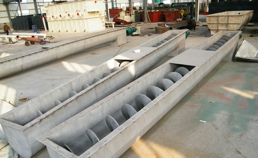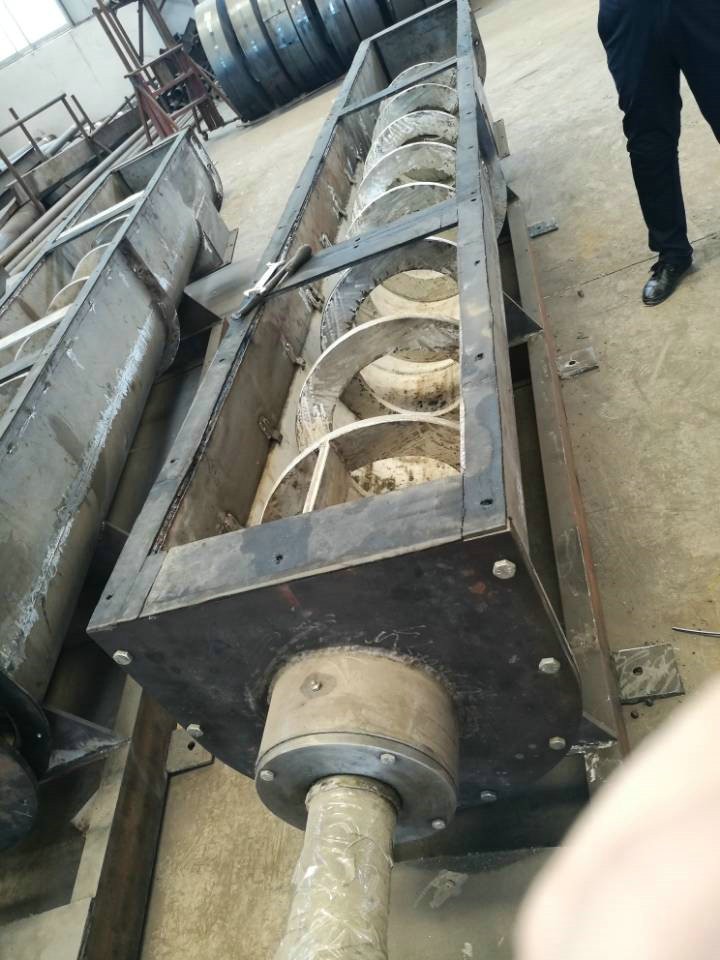 1.驅動裝置:采用擺線針輪輪減速機或軸裝式硬齒麵齒輪減速機,設計時應盡可能將驅動裝置設在出料口端,使螺旋體在運轉時處在受拉狀態。